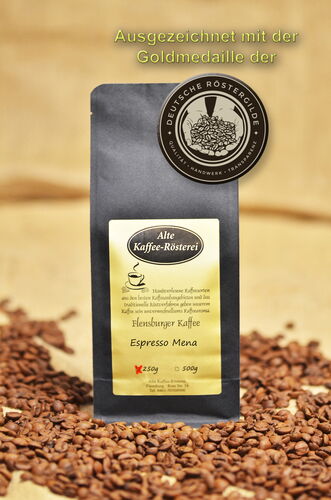 Ein 100% Arabica Espressoblend, dessen Hauptanteil aus »Mena Gold« besteht.